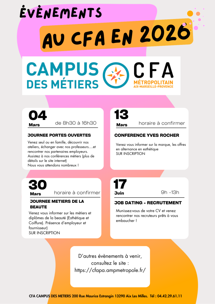 Une absence, un retard, une demande de document ? Envoyez un mail à absencecfa@ampmetropole.fr