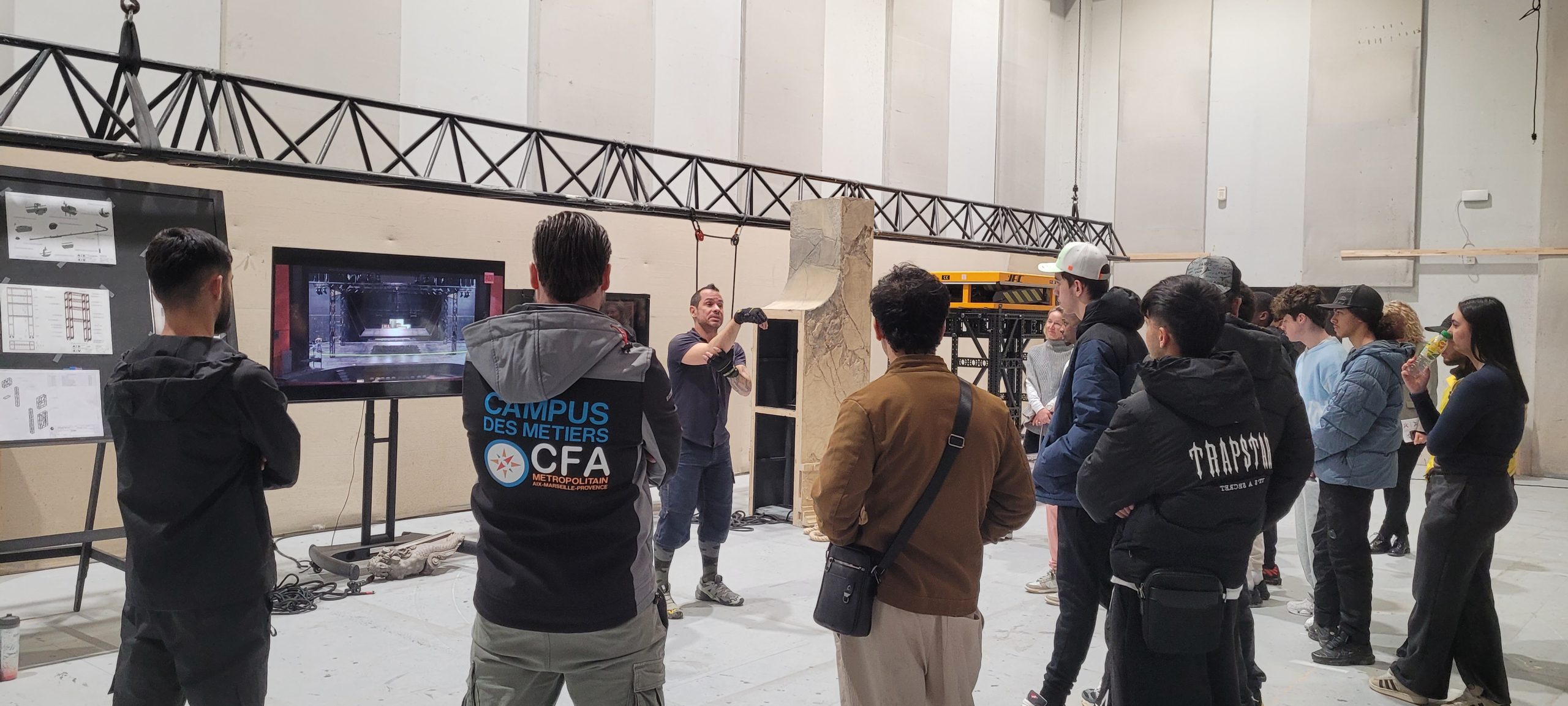 A l’occasion de la Journée Portes Ouvertes aux ateliers du Festival d’Aix à Venelles, les classes de 1 CAP BO C gr2 et 1 CAP PE ont ont pu les visiter. Ils ont découvert différents métiers de l’opéra : serrurier, vidéaste, menuisier, décorateur, costumier et machiniste, et cela dans le cadre d’un projet pédagogique avec le festival d’art lyrique d’Aix en Provence.
